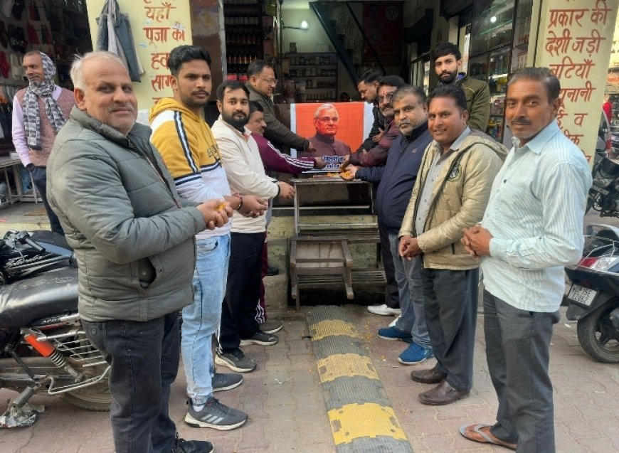 गुरुवार को कस्बें के पड़ाव चौक में भाजपा के पूर्व मंडल अध्यक्ष प्रधुम्न शर्मा के प्रतिष्ठान भाजपा कार्यकर्ताओं ने सर्वप्रथम पूर्व प्रधानमंत्री अटल बिहारी वाजपेयी के चित्र पर पुष्पांजलि अर्पित की इसके बाद लडडू का प्रसाद वितरित किया।इस दौरान भाजपा के जिला प्रतिनिधि अभिषेक गर्ग ने कहा कि प०अटल बिहारी वाजपेयी युग पुरुष थे उन्होंने अपना सर्वस्व जीवन पार्टी और देश हित के लिए समर्पित किया था। भाजपा नेता विकास कौशिक ने कहा कि हमें अटल बिहारी वाजपेयी के जीवन से प्रेरणा लेनी चाहिए और उनके पदचिन्हों पर चलना चाहिए।पूर्व मण्डल अध्यक्ष प्रधुम्न शर्मा ने कहा कि पूर्व प्रधानमंत्री अटल बिहारी वाजपेयी ने विश्व पटल पर देश की पहचान बनाई थी।उनके जैसा राष्ट्रभक्त नेता सदियों में एक बार ही जन्म लेता है।इस दौरान मुख्यरूप से रामकिशोर शर्मा,अभिषेक गर्ग,प्रधुम्न शर्मा,विकास कौशिक, असीम शर्मा,बंटी राजवंशी,सतीश चावड़ी,विनय शर्मा,आकाश शर्मा,उमेश शर्मा आदि मौजूद रहें।